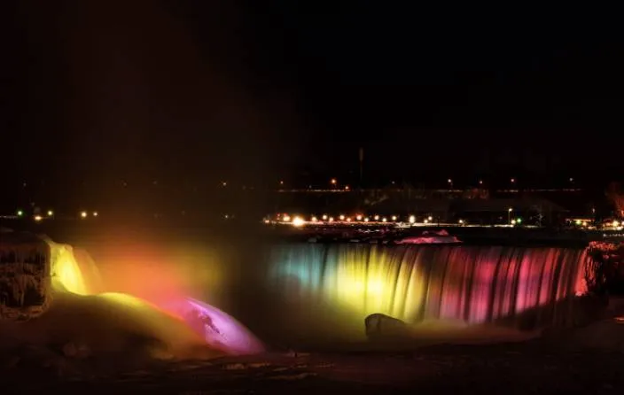 晚间观赏尼亚加拉大瀑布灯光秀。