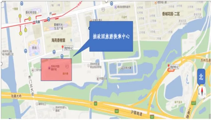 注:景区换乘中心行车路线:沪宁高速苏州出口-S227-阳澄湖东路-相城大道-润元路-润庆巷-喜庆路-拙政园换乘中心(全程7.8公里,9个红绿灯路口)。