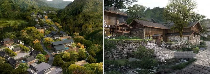 ▋规划思路:本区域为高山峡谷地带,山高水急,几乎没有平地,村落均依山而建,散落在自然山水之中,生态环境优良,自然风光条件较好,章乃器文化村、章氏宗祠、普济寺等众多人文景点,是较为理想的康体养生、文创体验区域,适宜利用山村民居建设旅游服务与接待设施,沿平溪源沿线景观进行整治,设置休息、服务点。