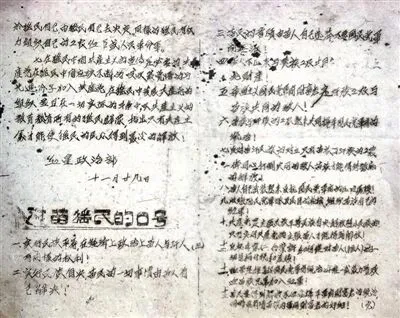 在新圩阻击战打响的第二天,红三军团政治部所在的灌阳玉溪乡迎来了一位神秘的客人,来者自称是瑶王派来与红军联系的代表。他并恭敬的把一封瑶王的亲笔信递给了红三军团教导营政治委员李志明同志。李志明是一位有着丰富政治经验的老同志,看信的内容才知道瑶民代表奉瑶王之命前来与红军谈判,想与红军联合一起打国民党,瑶民认为红军是他们的朋友,他们有着共同的敌人。瑶民代表像见到亲人一样向红军倾诉了仅仅一年以前桂北少数民族起义被国民党政府镇压的经过。