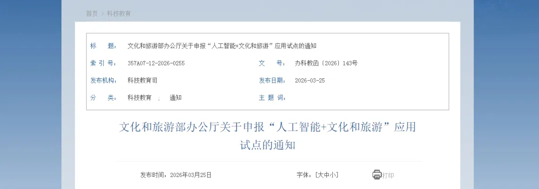 快讯|文化和旅游部办公厅关于申报“人工智能+文化和旅游”应用试点的通知