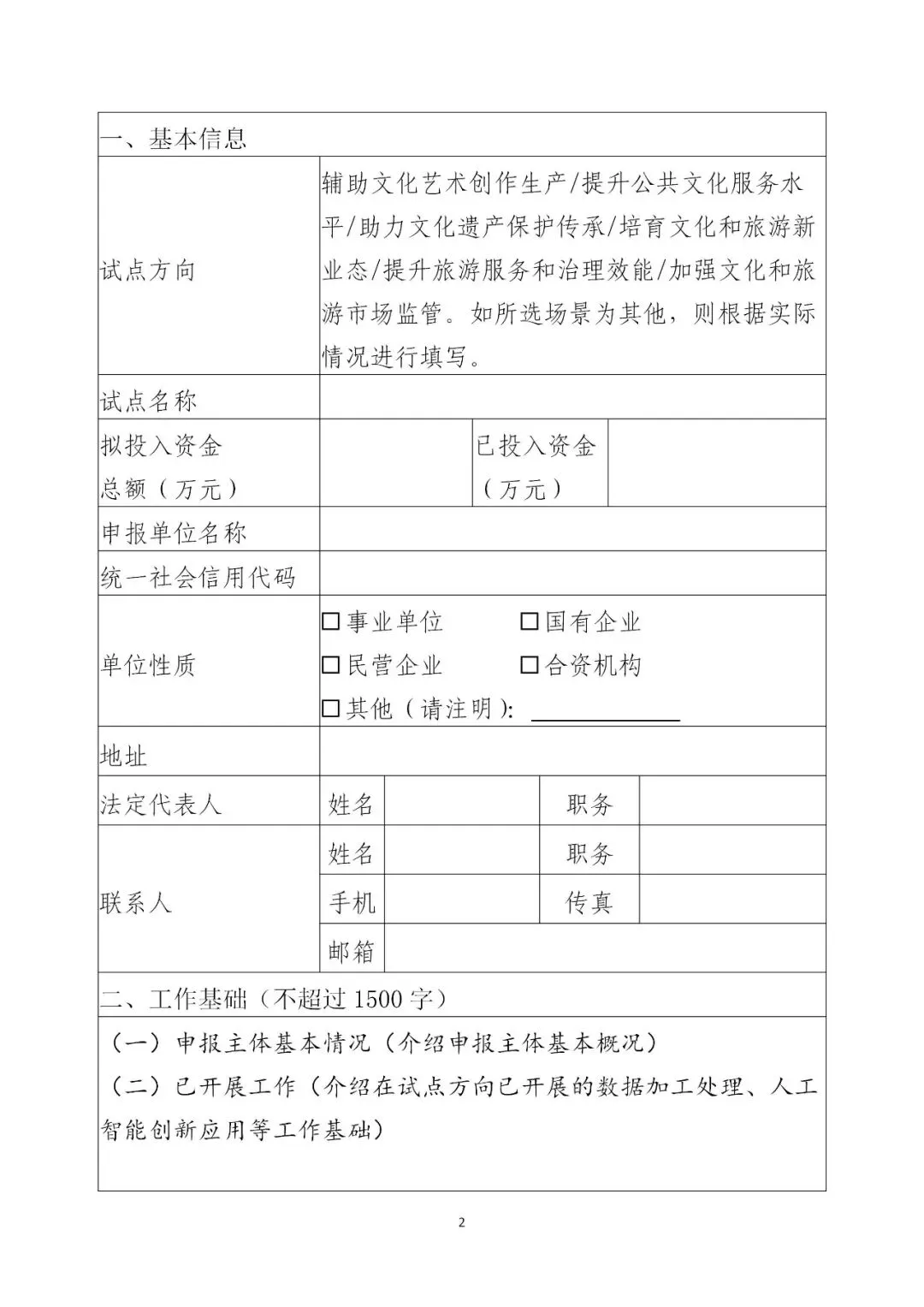 为贯彻党中央、国务院决策部署,落实《关于深入实施“人工智能+”行动的意见》要求,加快推进人工智能技术在文化和旅游领域深化应用,拟部署一批“人工智能+文化和旅游”应用试点。现将有关事项通知如下: