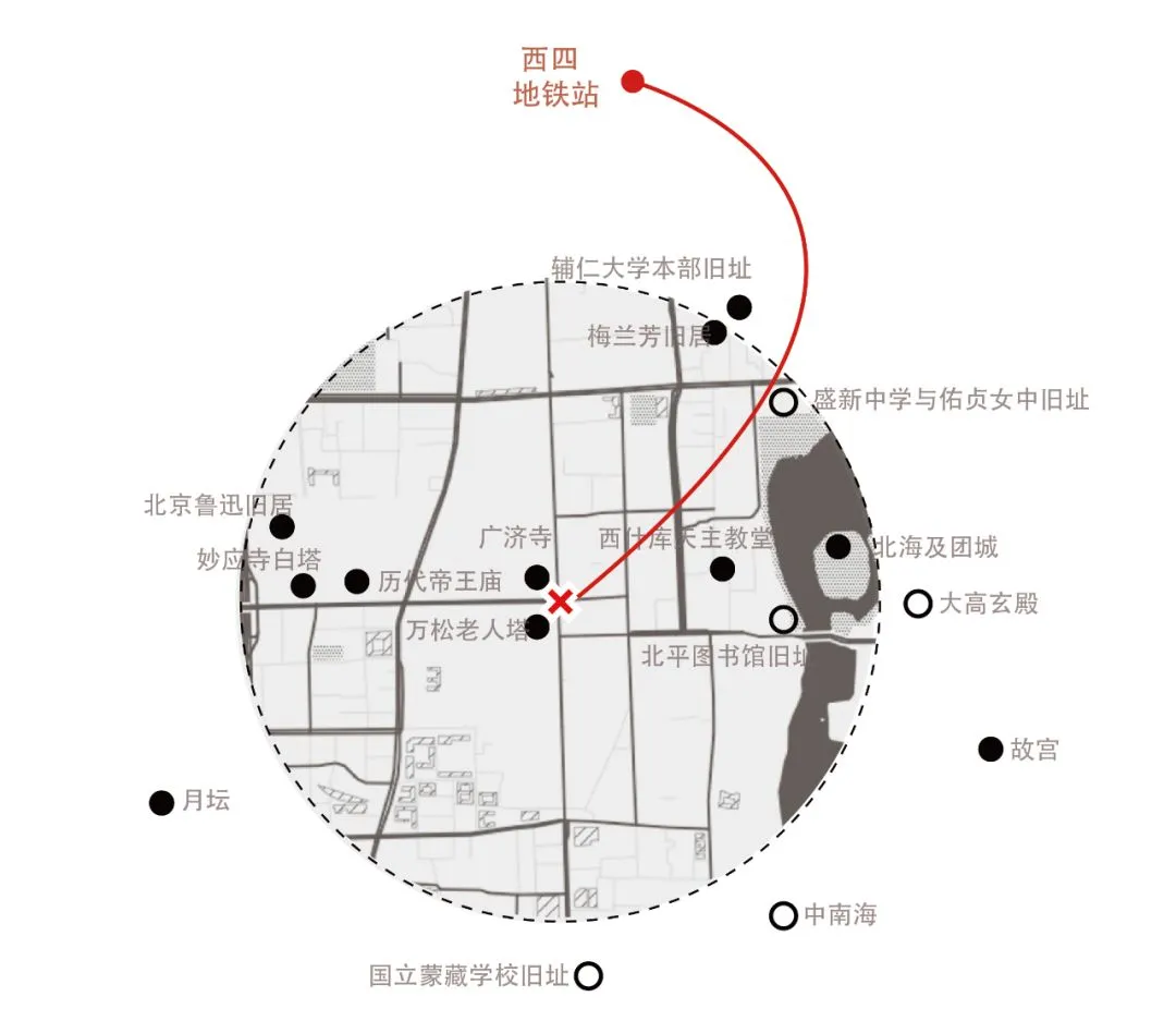 第四个推荐站点:西四地铁站。半径1.5km内有10处国保单位,其中两处暂时未开放。片区内有白塔寺片区及北海公园是大热景点。外围临近景点还包括故宫,西单等。