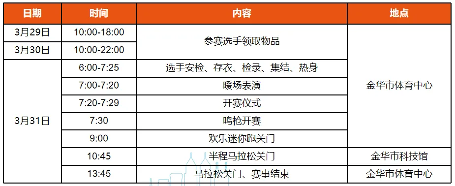 (2)半程马拉松检录口:金华体育中心东2门南侧