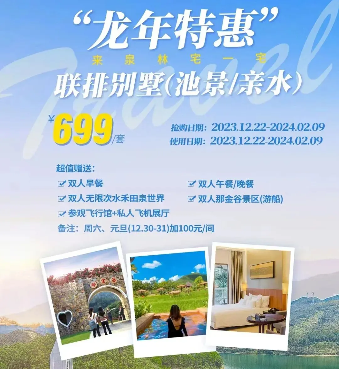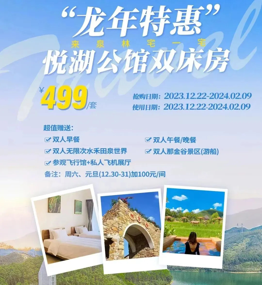 这个元旦假期,锦江温泉准备了不少跨年活动哦,美食音乐节、互动游戏、 烟花汇演……2023年12月30日至31日入住,每房赠送两张代金券,可直接在美食节上消费抵扣使用。美食节现场将有烧烤、打薯炉、窑鸡、烧饼、手工饮品、豆角糍等乡村特色小食等你来品尝。