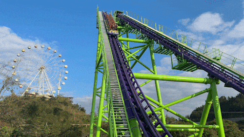 🎡超越极限:这座惊心动魄的过山车设有80度倾斜的陡峭爬升,让你的心跳瞬间加速!从高空俯瞰整个乐园,尽情释放你内心的刺激!