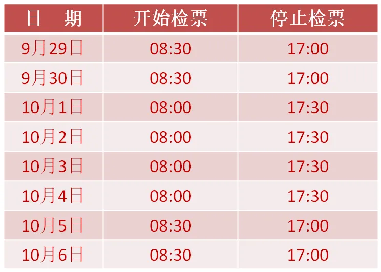 9月23日可以预约9月29日门票,9月24日可以预约26日和30日门票,9月25日可以预约27日和10月1日门票,9月26日可以预约28日和10月2日门票,9月27日可以预约10月3日门票,以此类推,具体见下表。