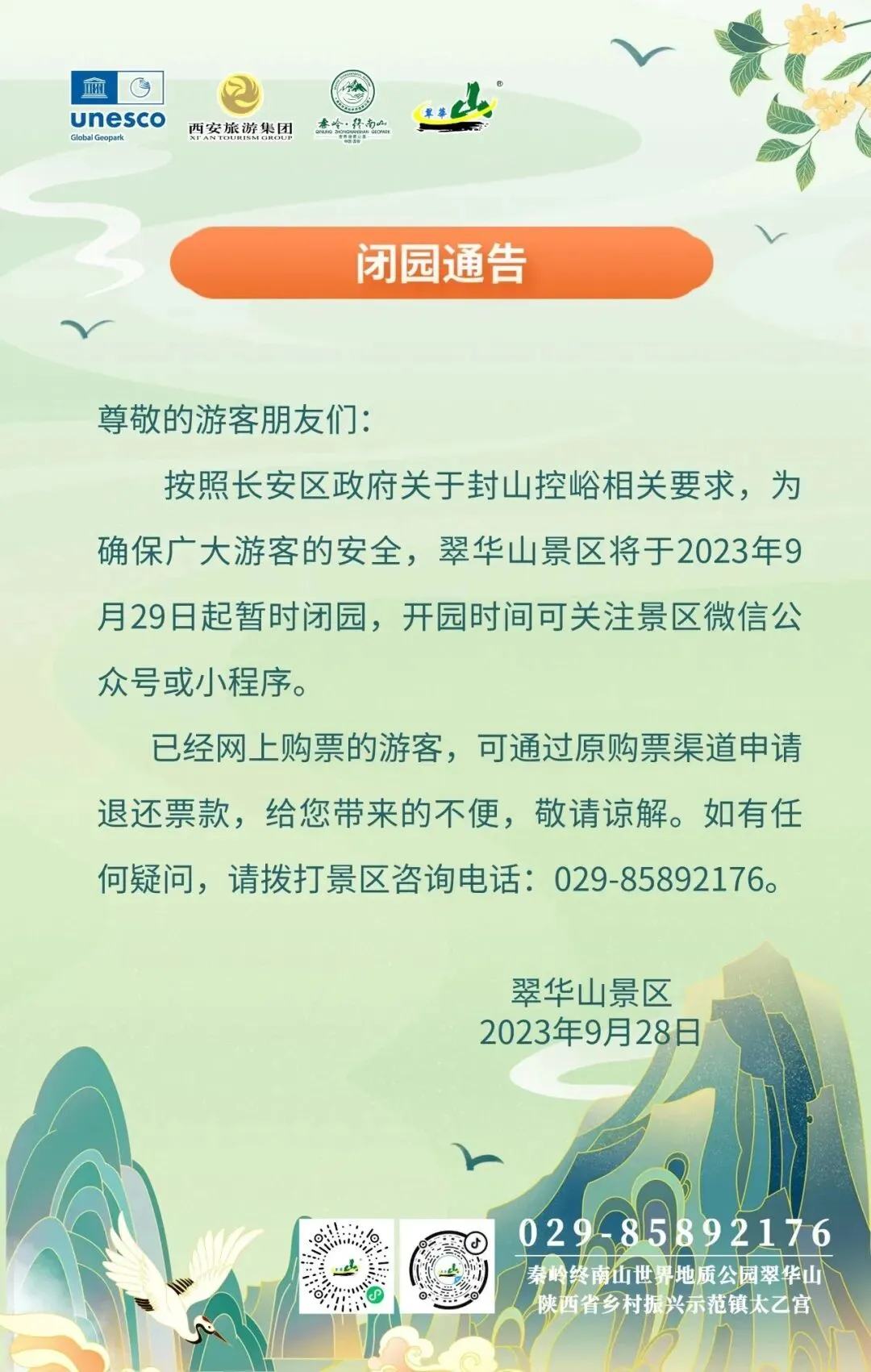 3.景区将不再开设线下售票窗口。