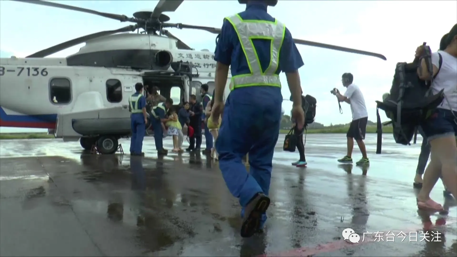 中午1点,记者在九洲机场候机厅见到了被飞机救回的25名妇女儿童,她们依然惊魂未定。韩女士说,她和一帮驴友共19人昨天从广州开车来到阳江东平,根据网络攻略,搭乘当地渔船登上南鹏岛,没想到遭遇恶劣的台风天气。