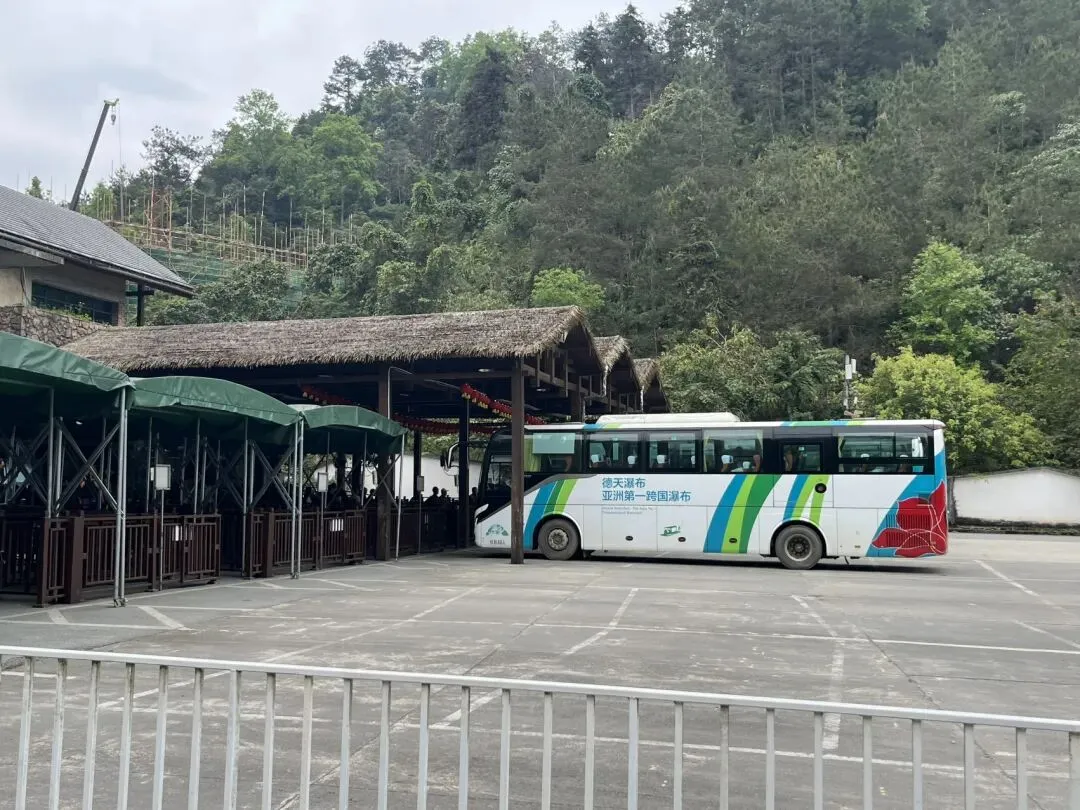 2. 从大新县自驾至德天瀑布游客集散中心后,停车,购买当天的80元单独门票(无需购买35元摆渡车票),然后跟随摆渡车路线(景区专用通道),出示民宿订单信息,约20分钟即可开到德天屯;