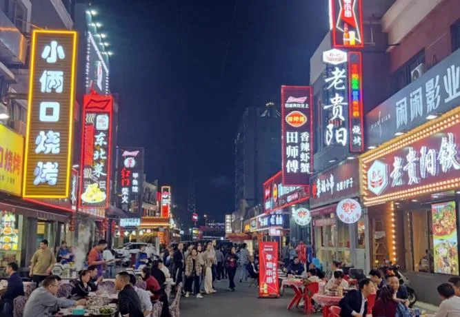 下午去甲秀楼,白天看建筑结构,晚上看灯光倒影,这个地方的精髓不在楼本身,在于它周围那条南明河,河两岸是老街和新建筑的混搭,你能看到贵阳这个城市怎么在传统和现代之间找平衡。晚上在青云路吃宵夜,丝娃娃、烤鱼、酸汤粉,这些东西吃下去你就知道,贵阳人的生活态度藏在吃里面,不讲究排场,但讲究味道够不够地道。