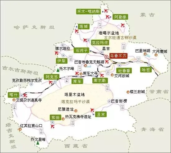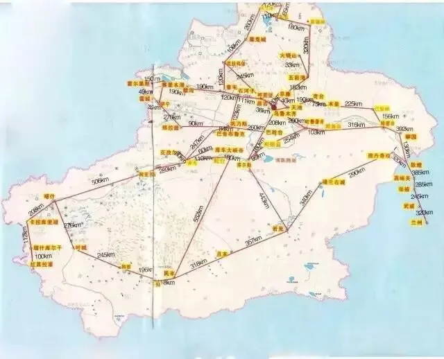 新 疆 环 线 地 图