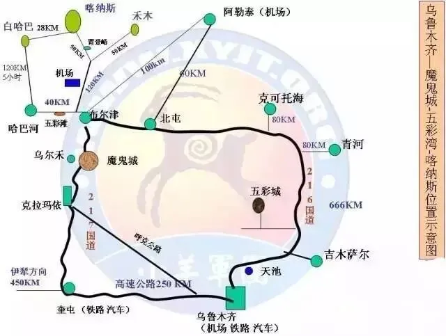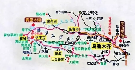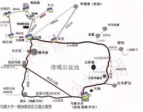 乌鲁木齐到喀纳斯地区示意图