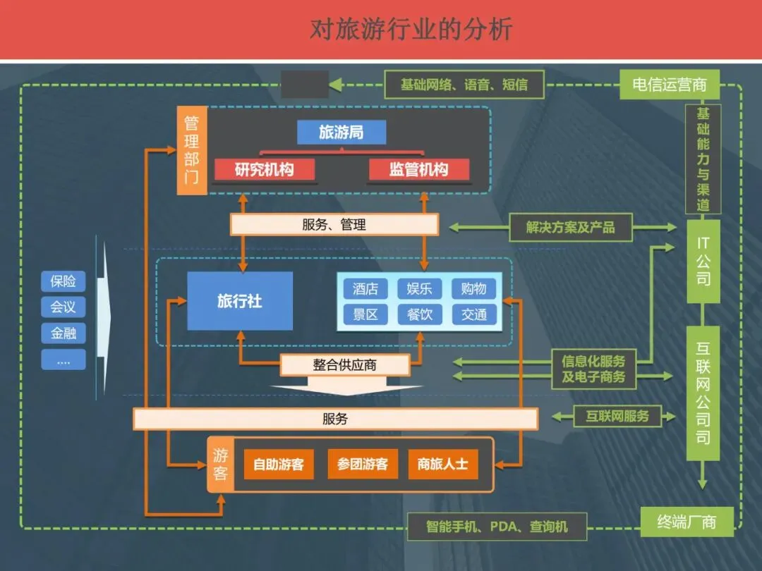 对旅游行业的理解,行业定位:旅游信息化应用平台的提供者,旅游信息的整合者,确立旅游行业电信运营商主导地位。