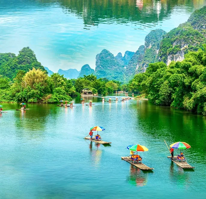 必玩阳朔县:漓江精华段(兴坪)是20元人民币背景取景地。遇龙河竹筏漂流+徒步,不分季节游览,都能感受山水慢节奏诗意生活。除此之外,还有桂林最南部的银子岩溶洞,阳朔西街(美食云集)、相公山、如意峰、十里画廊、千里江山图公园(小众景点)、世外桃源、印象·刘三姐实景演出等,既能带你看尽大自然的鬼斧神工,也能深度体验这里的人文盛宴。