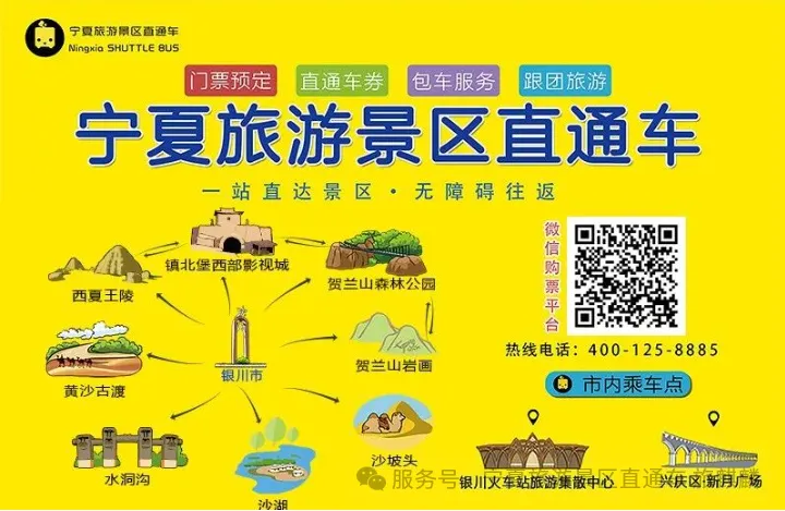 宁夏旅游景区直通车,作为宁夏“客运+旅游”融合发展的重要载体,打破交通壁垒,让旅途一键畅达,已覆盖银川市8个旅游坐标,提供16条自由行线路。从清廉广场乘车点(原新月广场)、银川汽车西站大厅等多个便捷站点出发,直达沙湖、镇北堡西部影城、贺兰山岩画、西夏陵等热门景区,不用纠结交通路线,一人一座、舒适便捷,专业运营团队全程护航。