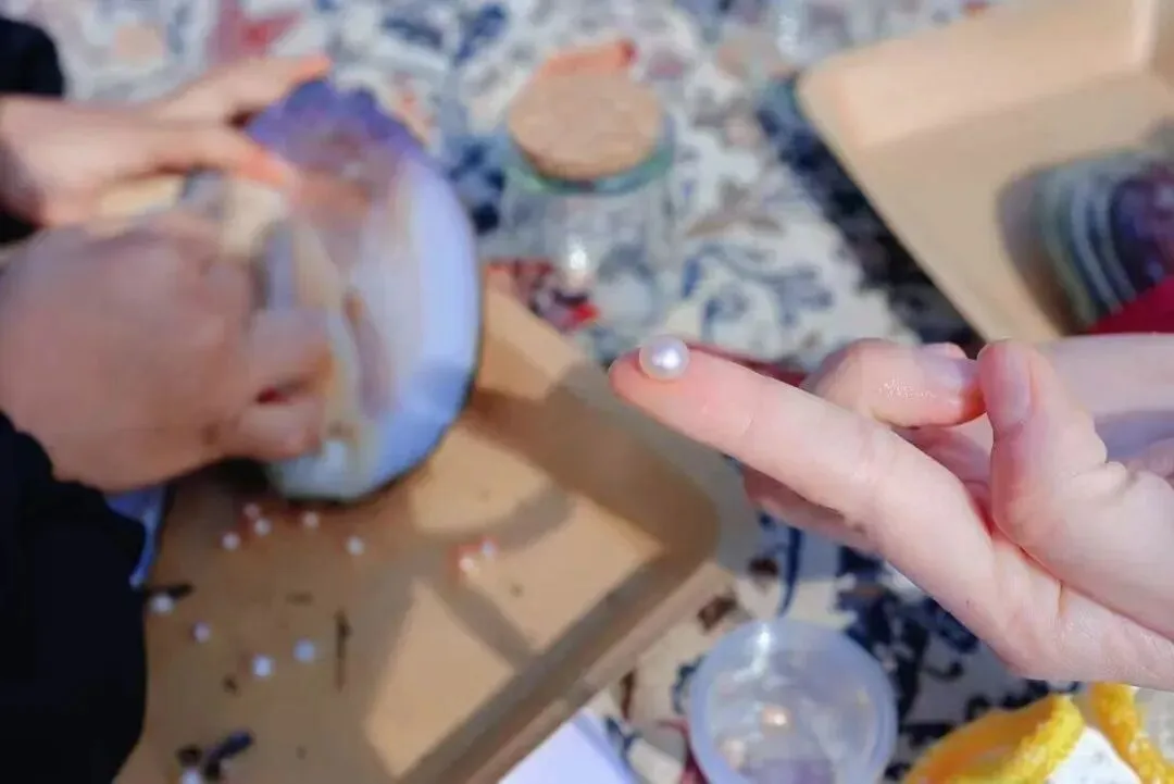 了解河蚌结构与珍珠形成原理,亲子合作剖开河蚌,用珍珠制作精美饰品,下塘摸河蚌、挖螺蛳等。