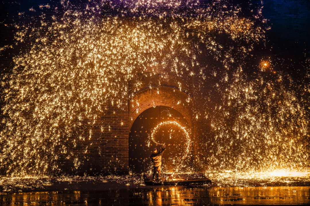 图:蔚县打树花,1600℃铁水泼洒城墙如星河
