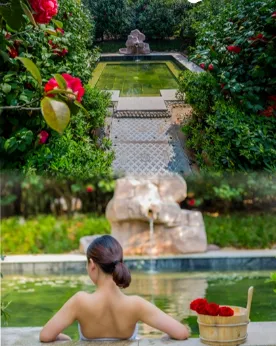 酒店推出户外园林温泉+莫奈花园主题+炫彩夜泡灯光秀+韩式汗蒸+恒温儿童嬉水池+器械健身+美式台球+休息厅+免费水果饮品等二十多个项目一票畅玩,只需159元/双人!