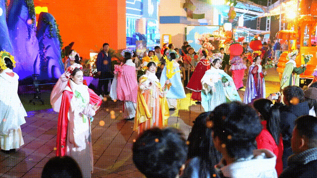 一路繁花天幕秀:两千架无人机以夜空为卷,繁星花影,是献给所有女生的春日情书!40+黑科技国风项目畅玩:一日穿越华夏五千年,沉浸式体验拉满。