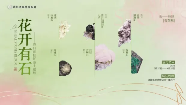 展览以“春天×花形矿晶×植物”为主线,以“石亦有花”为核心意象,融合地质科学与自然美学,打破矿物冰冷刻板印象,在春日里为观众带来兼具科学内涵与诗意美学的沉浸式观展体验。