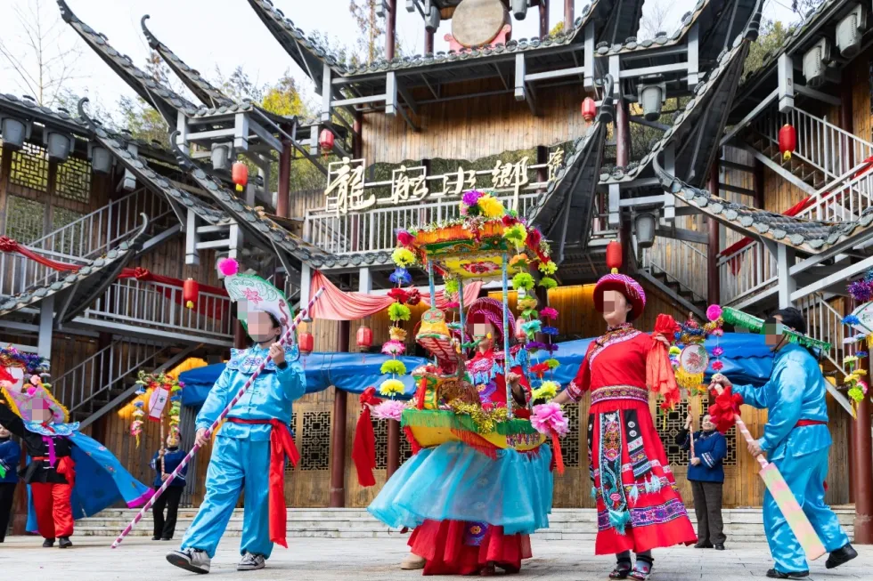 作为《龙船调》的原生发源地,景区以土家族非遗文化为核心,打造幺妹花街、山寨欢歌两大民俗主题区,还原土家族传统建筑风貌,集中展示土家族银饰锻造、阳新布贴等非遗手作,还有本土特色餐饮、文创周边业态。