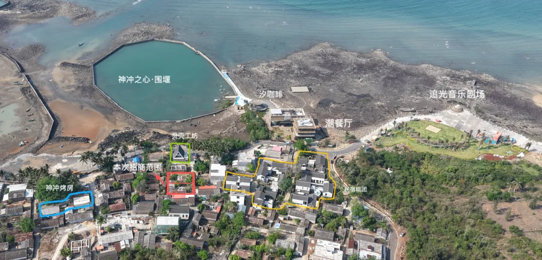 目前,项目首开区已建成并投入运营多个旅游业态,包括潮餐厅、汐咖啡厅、神冲之心·围堰、追光音乐剧场及海上俱乐部等。此次招商的21号和22号房屋为度假区核心片区业态组团,位于神冲村神涌大门内,紧邻海边,景观视野优越。
