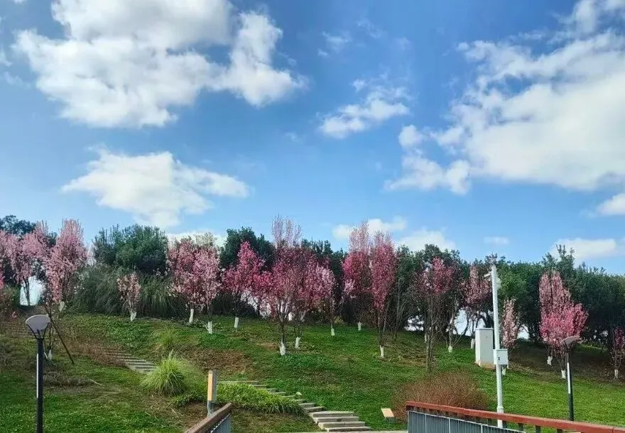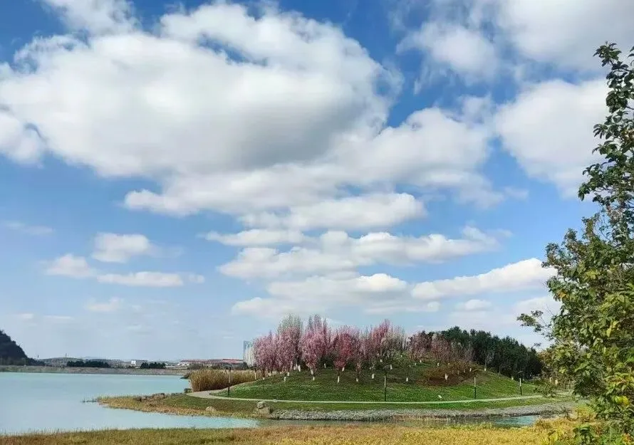 三月去沿湖步道的樱花、海棠都开了,粉花衬着蓝绿色的湖水,层次感拉满,不管是清新日常风还是古风写真都能出片。