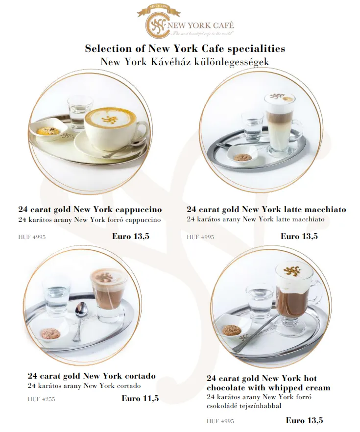 地址:1073 Budapest,Erzsébet krt. 9-11.交通:地铁2号线(M2)至Blaha Lujza ter站官网:https://newyorkcafe.hu/
