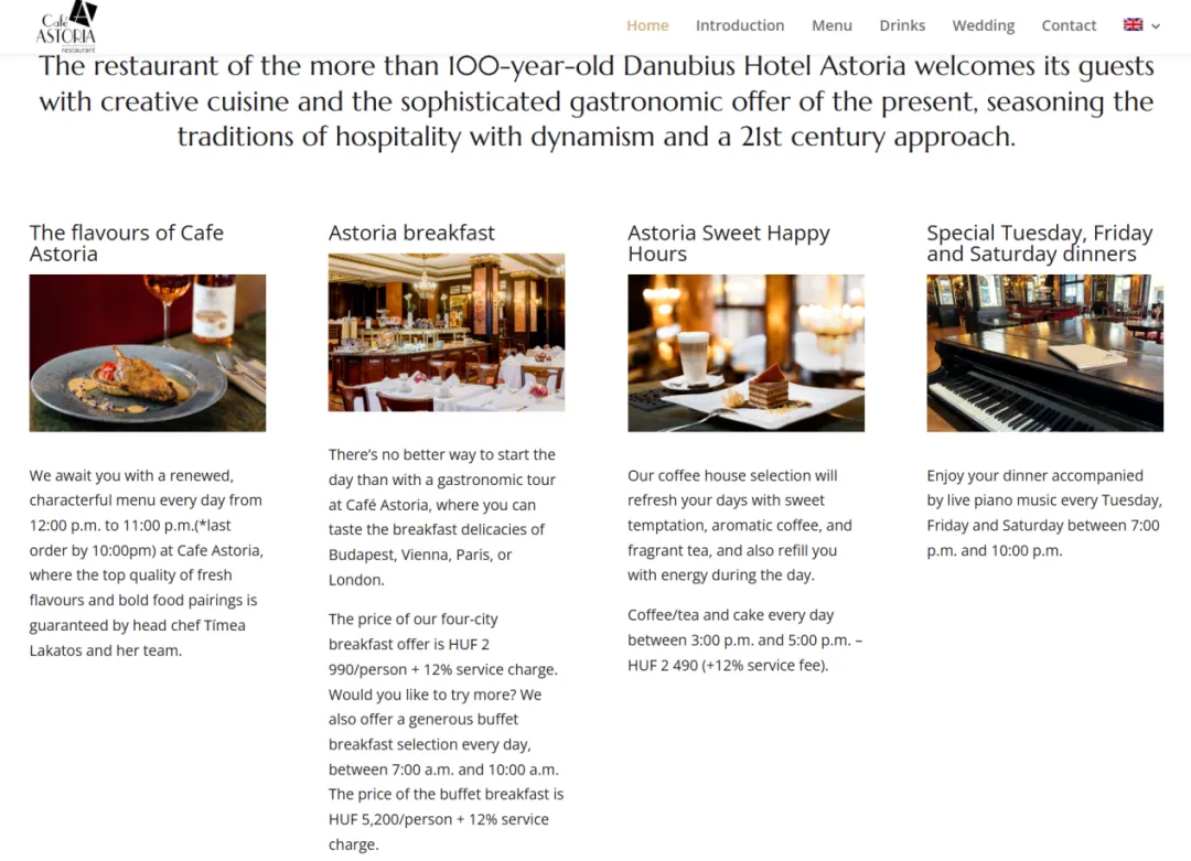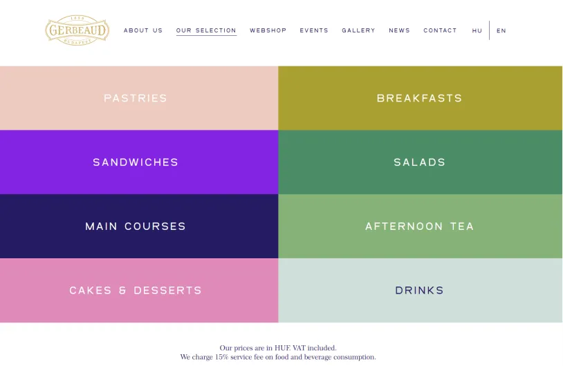 这里不仅提供精致咖啡与甜点,经典菜肴如牛肉炖菜、渔夫汤、鸡腿红椒酱风味、维也纳炸肉排和烤鹅肝,以及著名的甜点如多波蛋糕、萨赫蛋糕和埃斯特哈齐蛋糕,味觉与视觉双重享受。