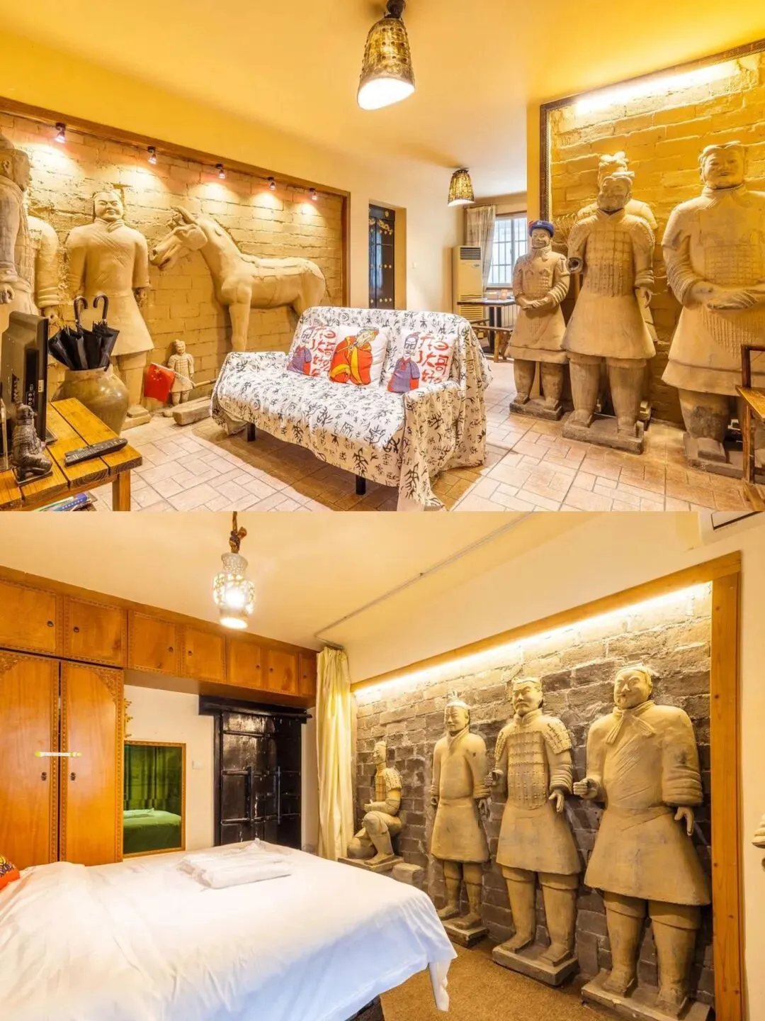 随便订的酒店是兵马俑主题的,随便走进的公园是大唐主题的,随便乘坐的地铁随处都是水墨书法、大唐彩绘......
