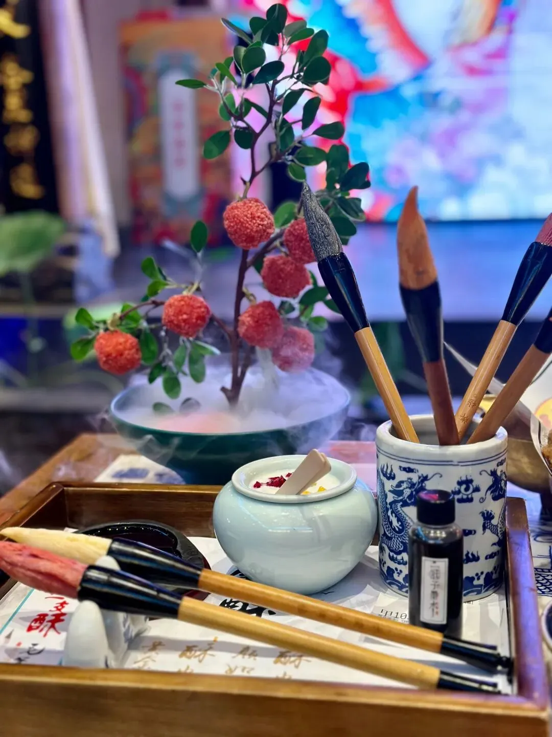 随便吃的美食是毛笔形状的,还有穿着汉服的小哥问你古诗词,城根下的摔碗酒络绎不绝,笔墨纸砚摆满一条街... ...