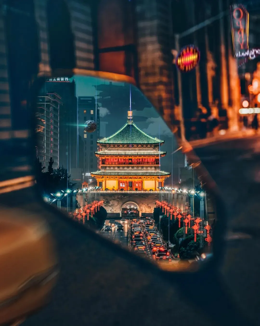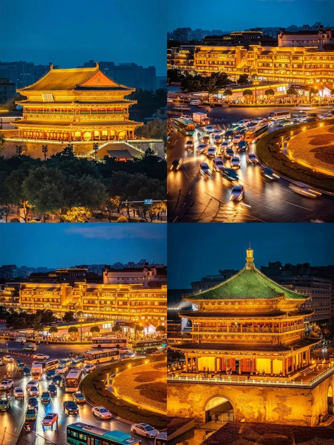 晚上的时候钟鼓楼亮起灯光,华灯初上,琼楼玉宇金碧辉煌,青瓦金灯璀璨夺目,美极了如梦如幻。