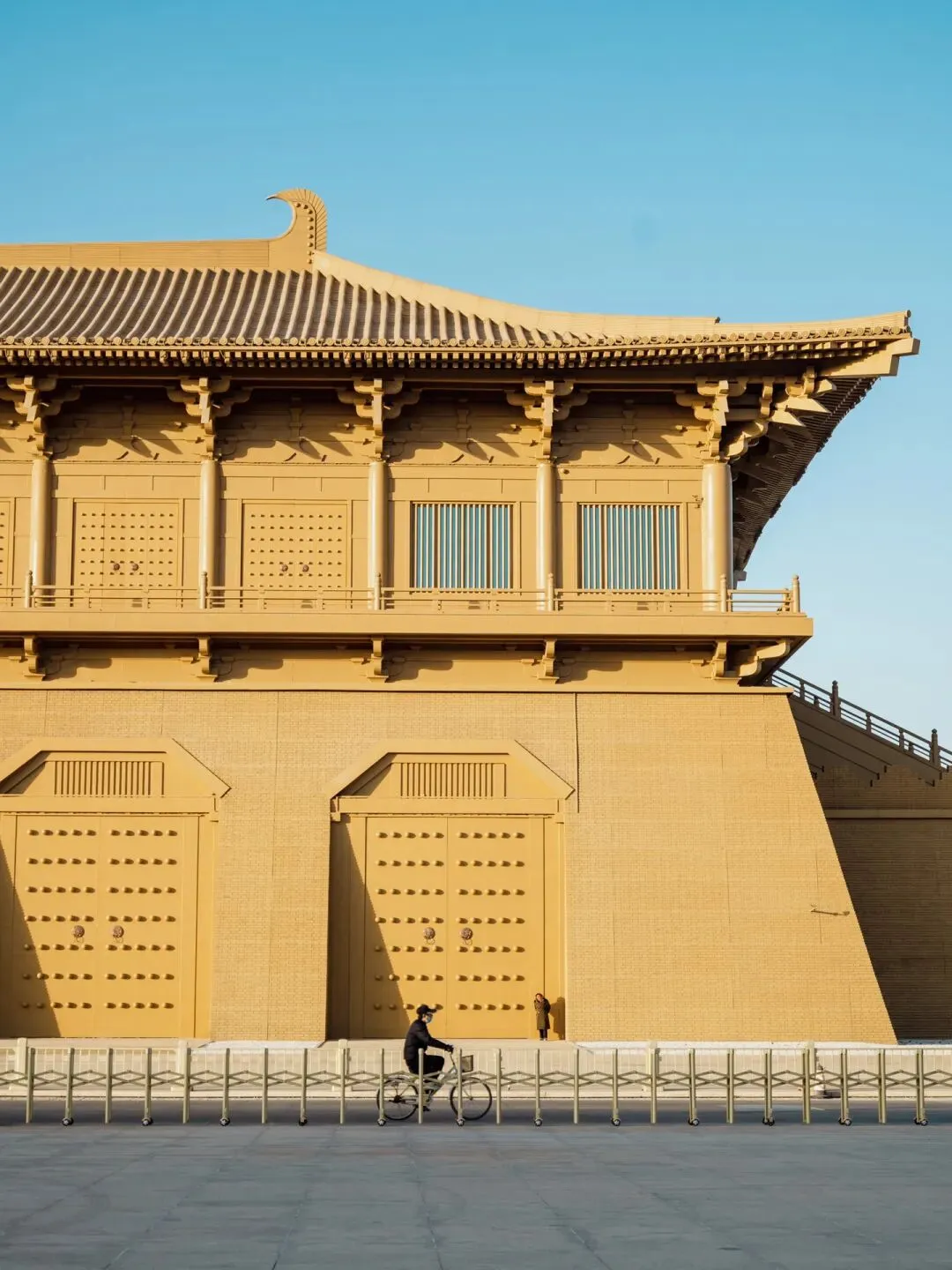 骑车走过大明宫丹凤门广场,壮阔的丹凤门,复古浅砖黄在阳光下仿佛闪着光,这里都有种上早朝的既视感。