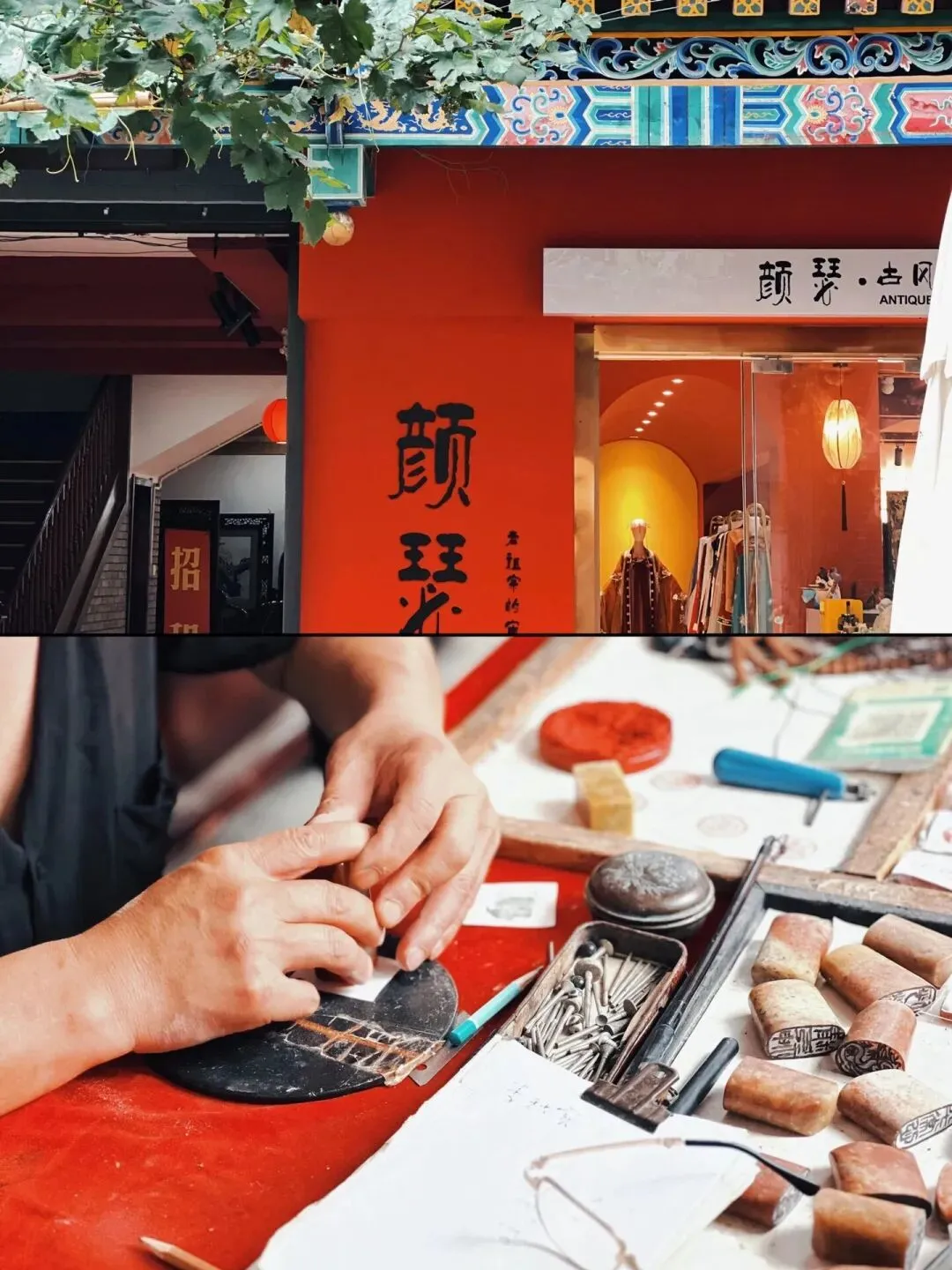 这里售卖者很多书法字画、文创古玩,文化氛围很浓,处处透着一股雅致的烟火气。
