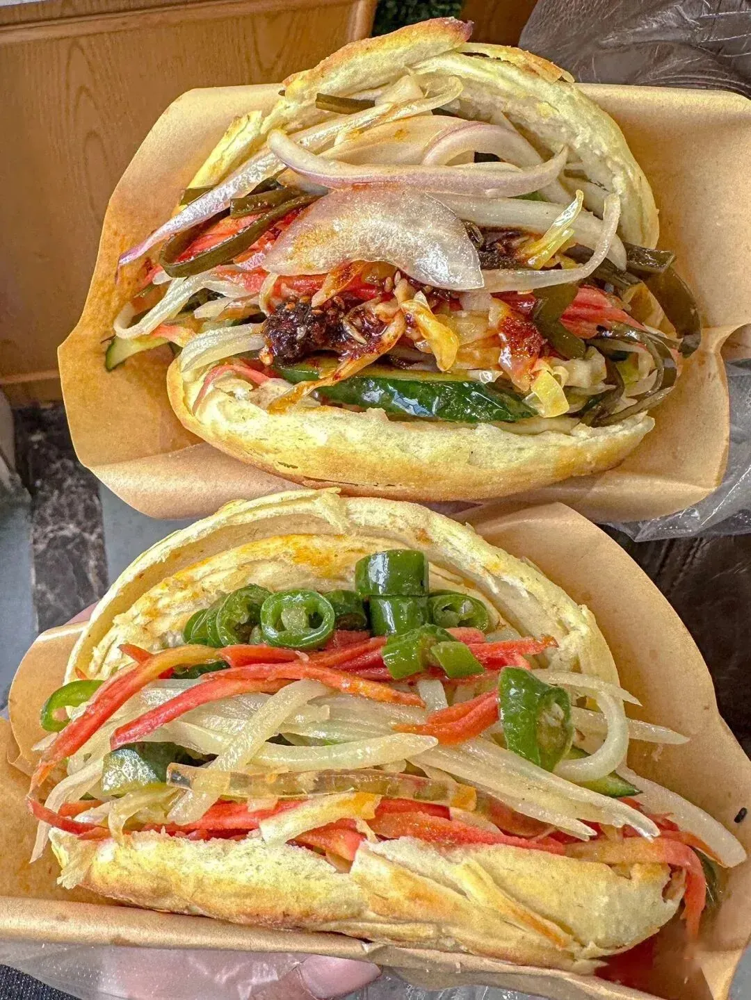 除此以外,还有碳水翻倍的凉皮夹馍,油润咸香的蛋菜夹馍,抹着秘制酱料的土豆片夹馍,甚至还能拿炸串来夹馍……分分钟刷新对馍的认知。