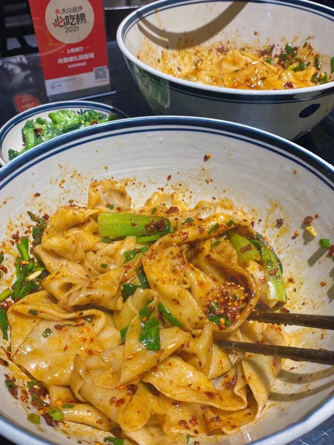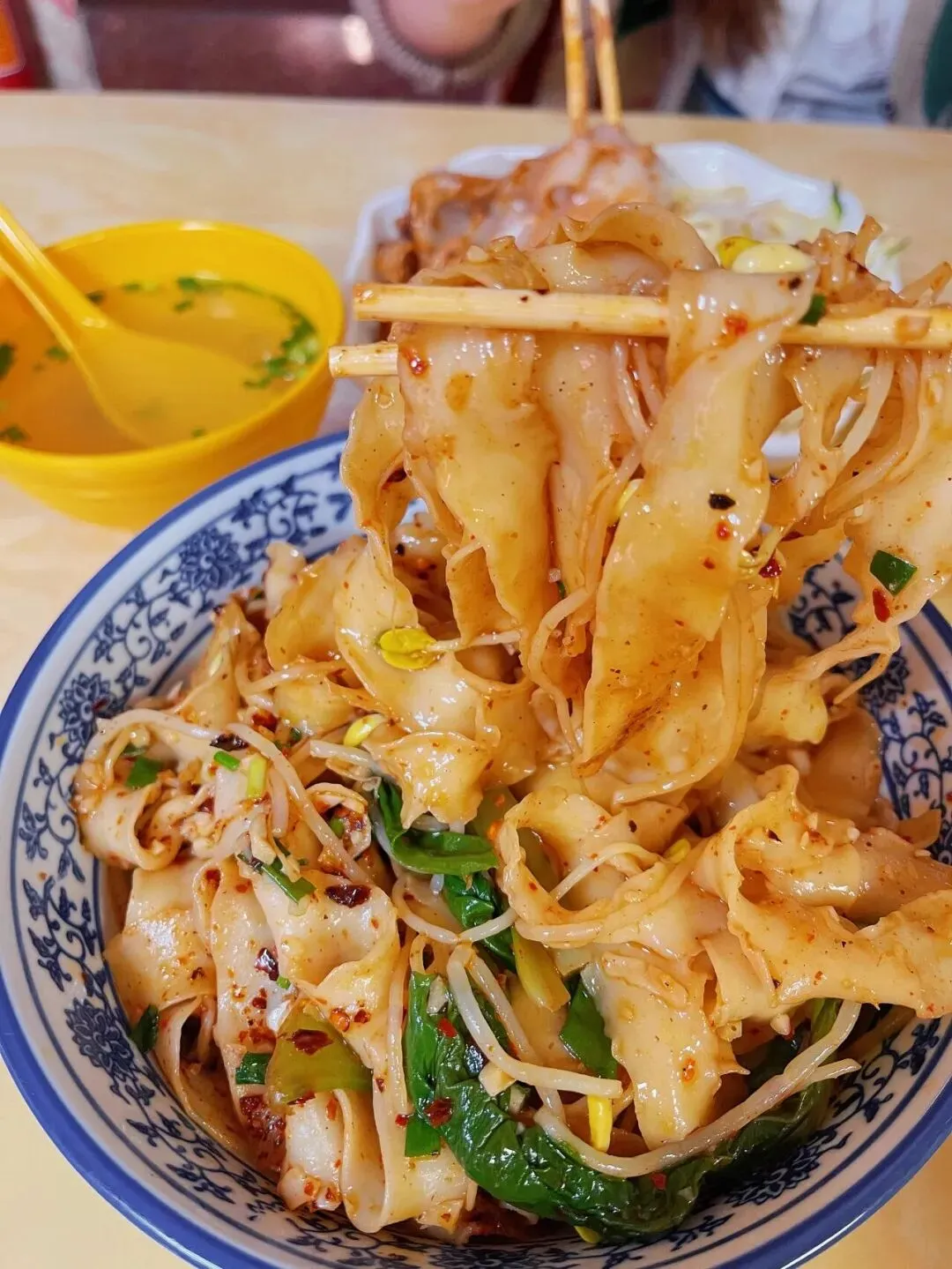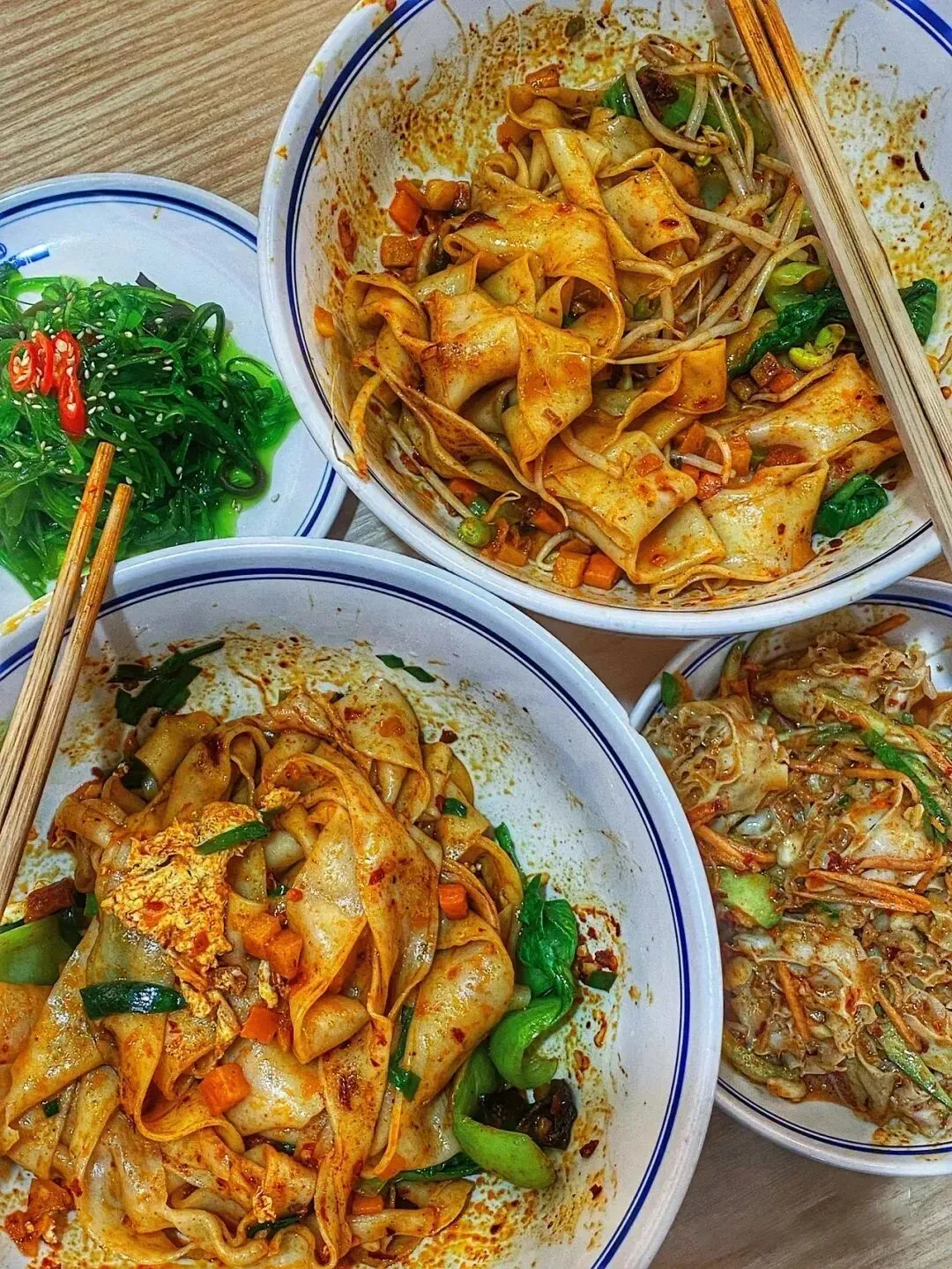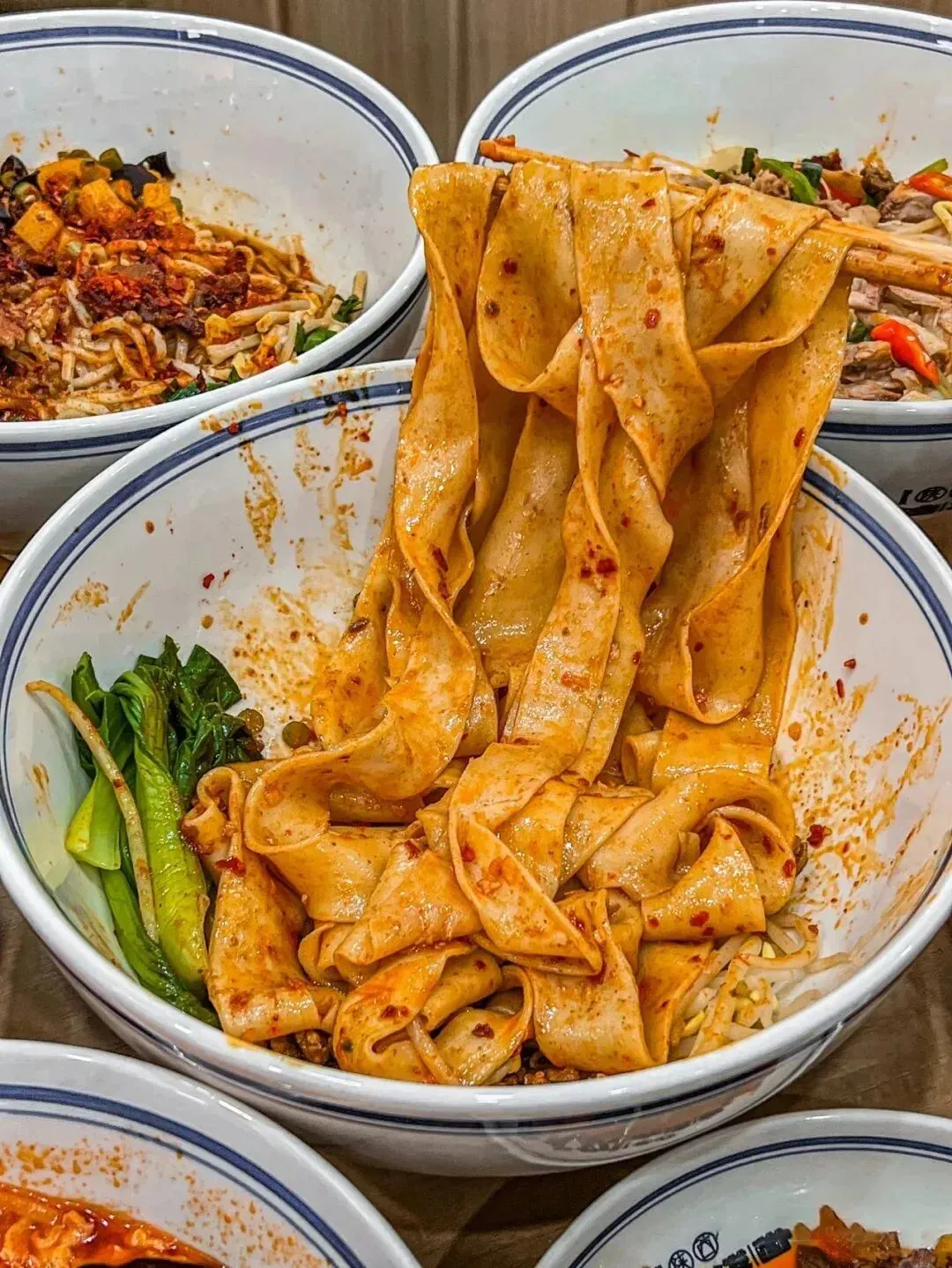 夹起一根根油润的宽面,十足的香辣瞬间挑动味蕾,伴着劲道弹滑的口感,不知不觉间就能清空一大碗。