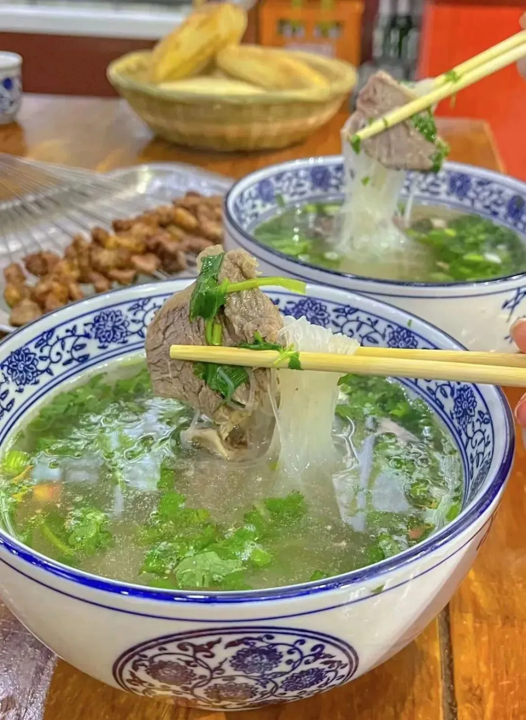 对本地人来说,走进小区门口那家常去的泡馍馆,一边和伙计们聊着天,一边手不停地掰着馍,才是饭点的正确打开方式之一。