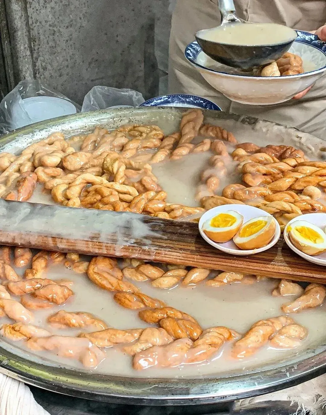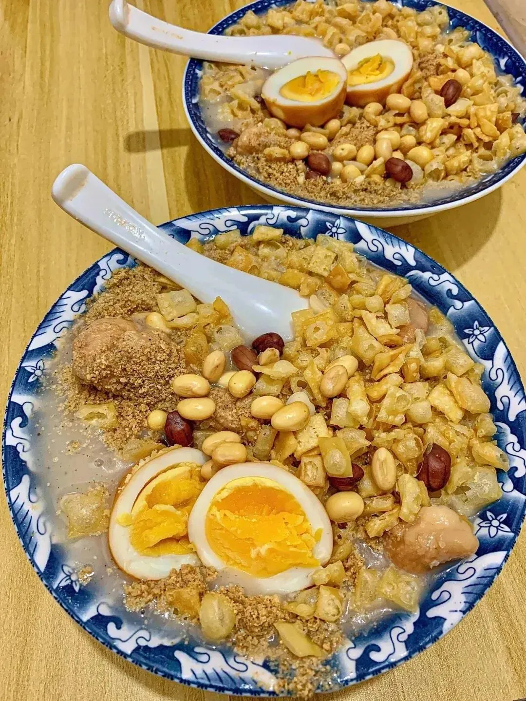 老乌家油茶麻花在西安小有名气,4元小碗油茶麻花,也可以点份7元的精选套餐,溏心蛋+油茶+麻花,还有超多配料,满满当当一大碗。