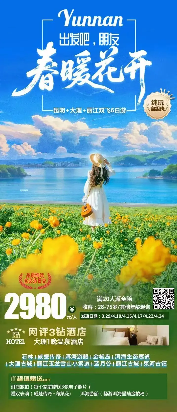 [烟花]旅行家·春暖花开-全陪班3月29日余位🈵,4月8日余位满,10日余位满,15号余位4个,17号余位12个