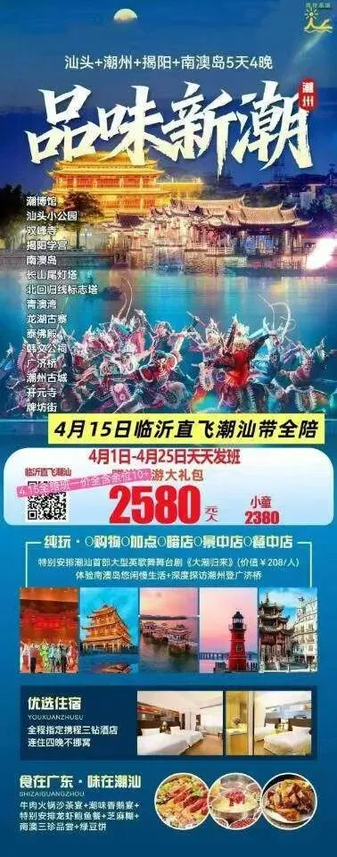 4月15日临沂直飞潮汕,全陪班2580