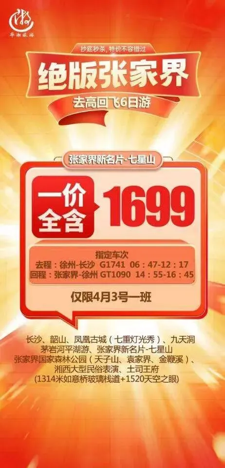 高铁到长沙,张家界飞徐州
