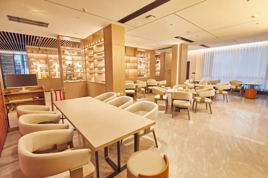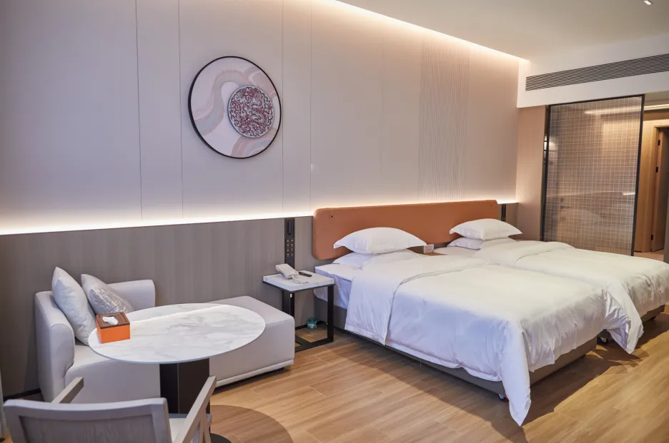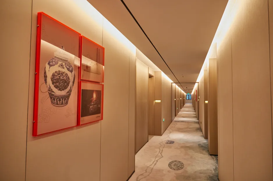 如果你是陶瓷文化爱好者,这家酒店就是你的 “梦中情宿”。它以千年窑火为设计灵感,从走廊青花瓷纹饰地毯,到客房内的陶瓷挂画,每一处细节都藏着瓷都密码,入住这里就是沉浸式感受陶瓷文化。