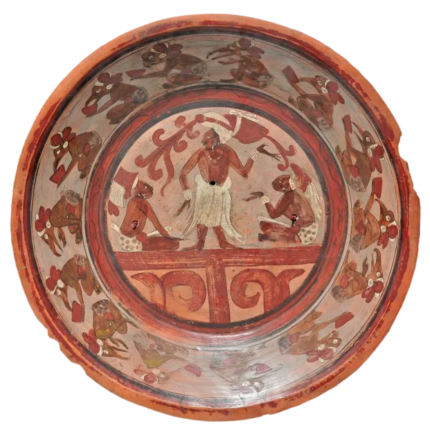 饰有祭司和鸟类的彩绘陶盘