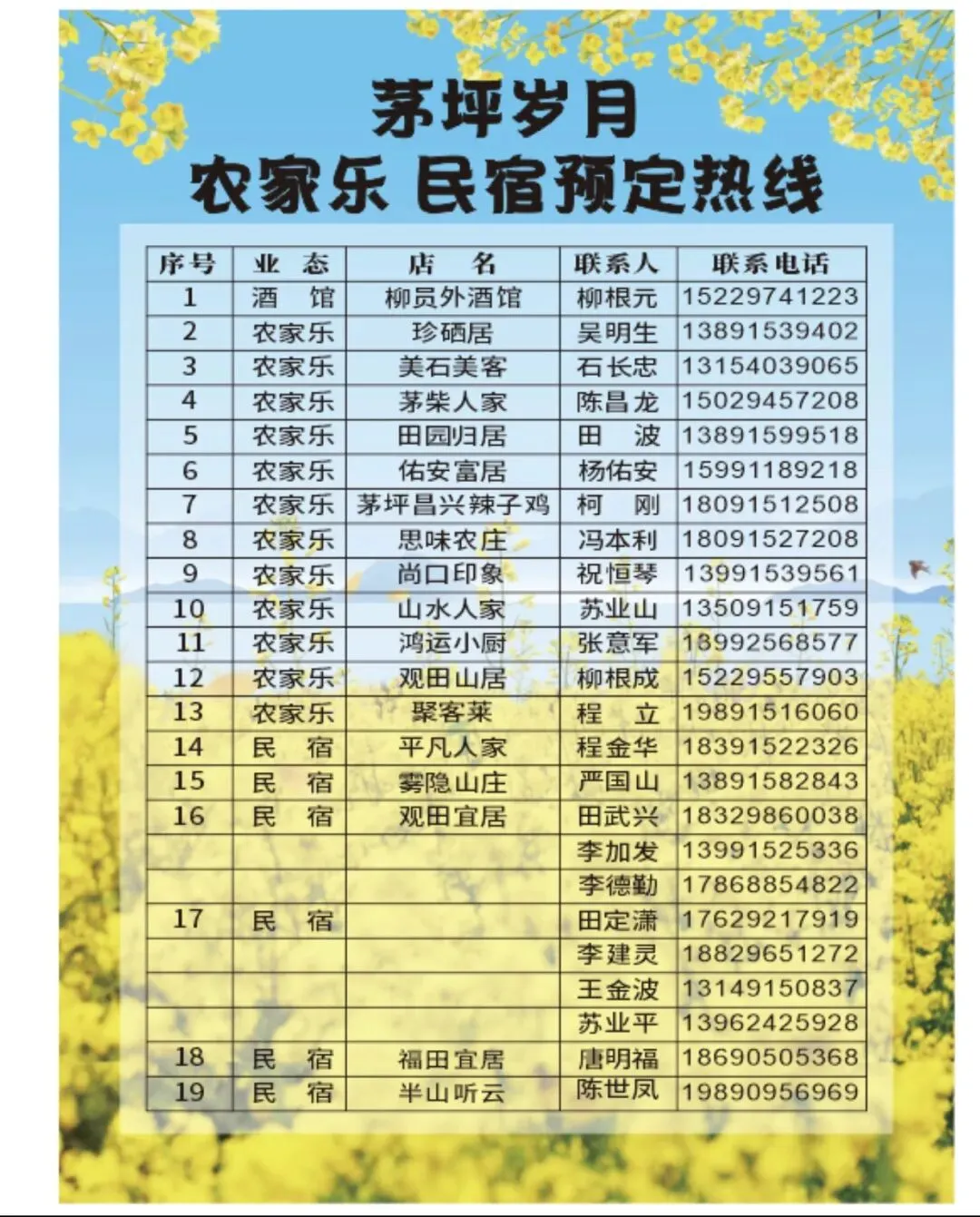 在这里你可以在水田油菜花海里品尝火锅,可以在高峰逸境垂钓、K歌、住宿。可以茅坪岁月品尝地道的农家乐。可以在四坪才子沟狂欢鸭游乐园带回满满的童年回忆等等,这里带给你的绝不是简单的游玩体验,更多精彩等着你来发现。