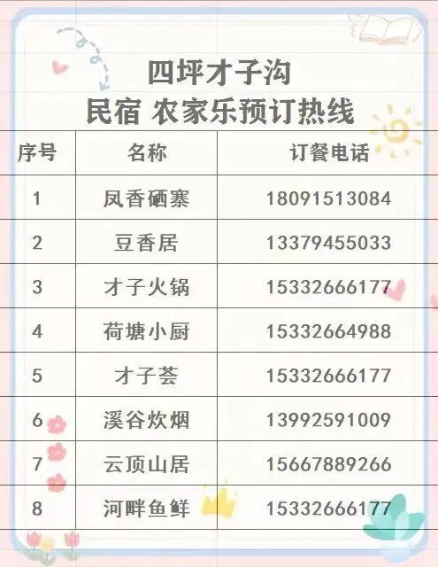 还有四坪社区才子沟,有热辣滚烫的才子火锅和营养丰富的豆腐宴风味独特的辣子鸡等,更有狂欢鸭亲子乐园,让你满载欢乐而归。