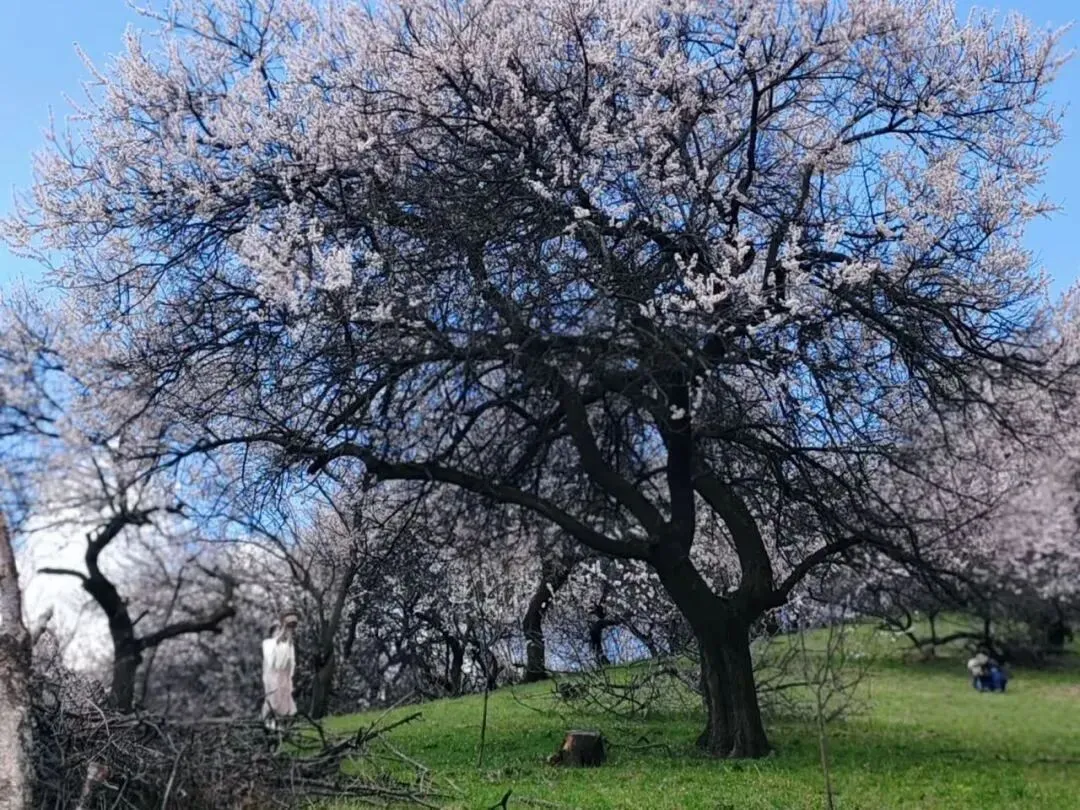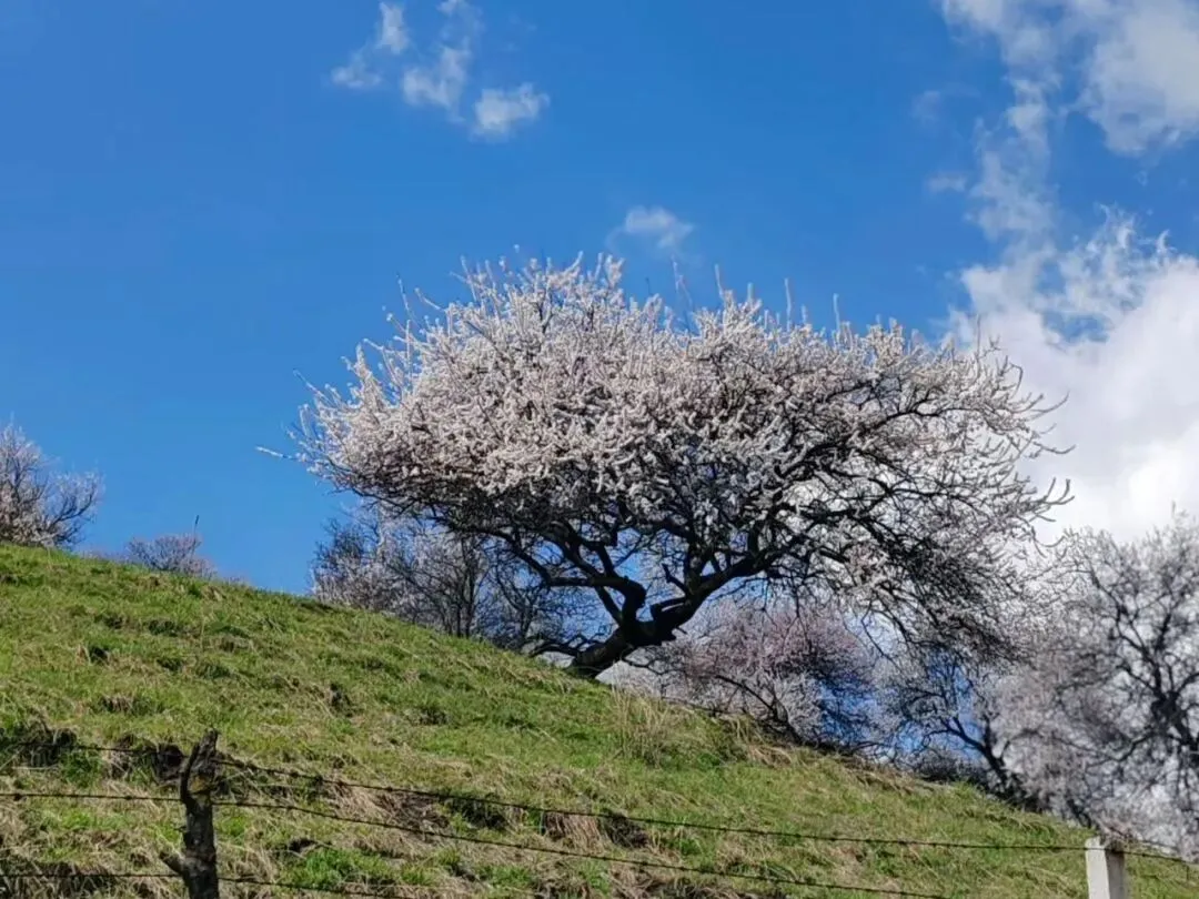 花苞深粉、初开淡粉、盛放近白,与雪山、草原同框极具冲击力,常规花期:4月初到4月中旬,盛花期大概7天左右!