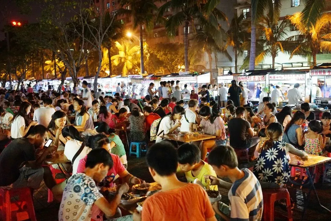 傍晚时分,除了品尝椰子鸡火锅、糟粕醋火锅、斋菜煲或海鲜烧烤等地道琼菜,还可以去海大南门夜市感受浓浓的烟火气。各色小吃摊一字排开,是体验海口夜生活的绝佳去处。