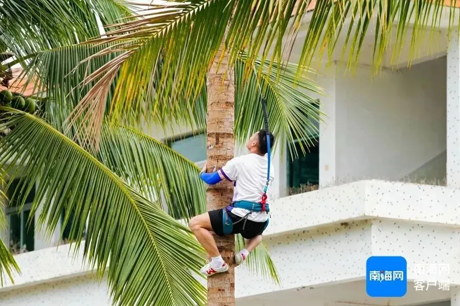 接着前往东方中学围观少数民族传统体育竞技,尤其不可错过攀椰竞速——选手们徒手攀爬椰子树,趣味十足,令人捧腹。