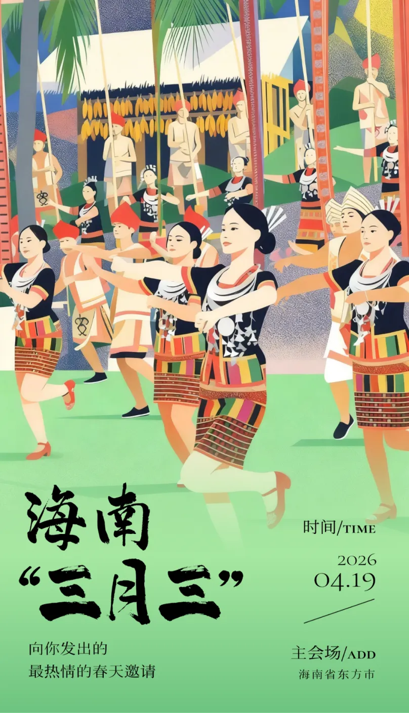 “三月三”是海南黎族、苗族最隆重的传统节日。每年农历三月初三,各族同胞通过对歌传情、舞蹈竞技等方式,庆祝春天的到来,祈愿五谷丰登、人丁兴旺。今年海南“三月三”活动定于4月19日开幕,为期三天,主会场设在东方市,全省各市县也将同步开展分会场活动。
